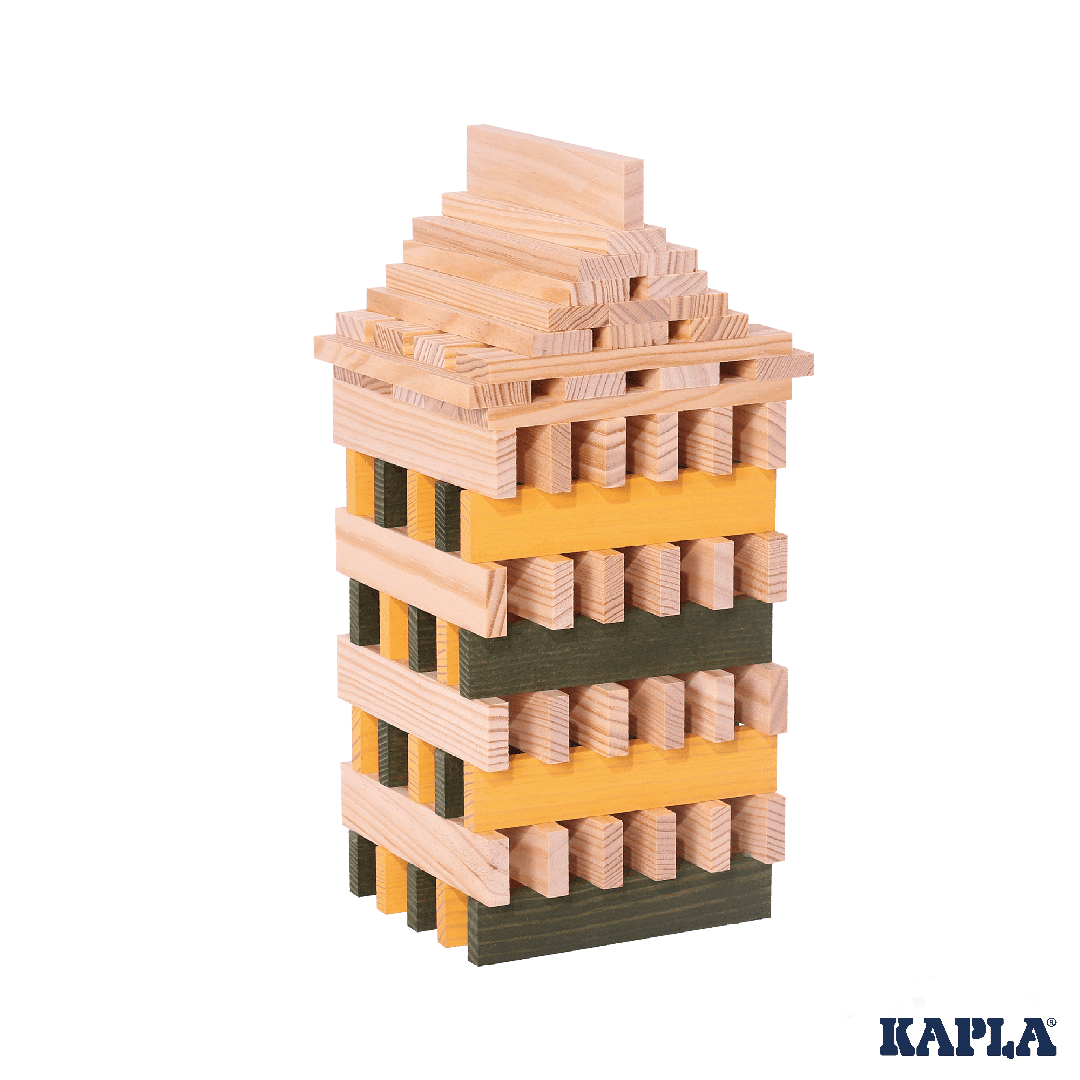 Inhalt: 75 Holzplättchen (55x naturfarben, 10x gelb, 10x grün) + Bauanleitung.