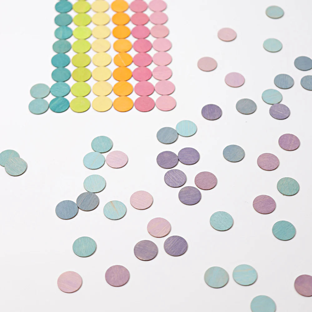 Mit diesen bunten Konfettitalern kannst du deinen Festtags- oder Geburtstagstisch fröhlich dekorieren. Sie sehen nicht nur wunderschön zusammen mit den Steckfiguren aus, sondern passen auch perfekt zu den Grimms Wimpelketten.