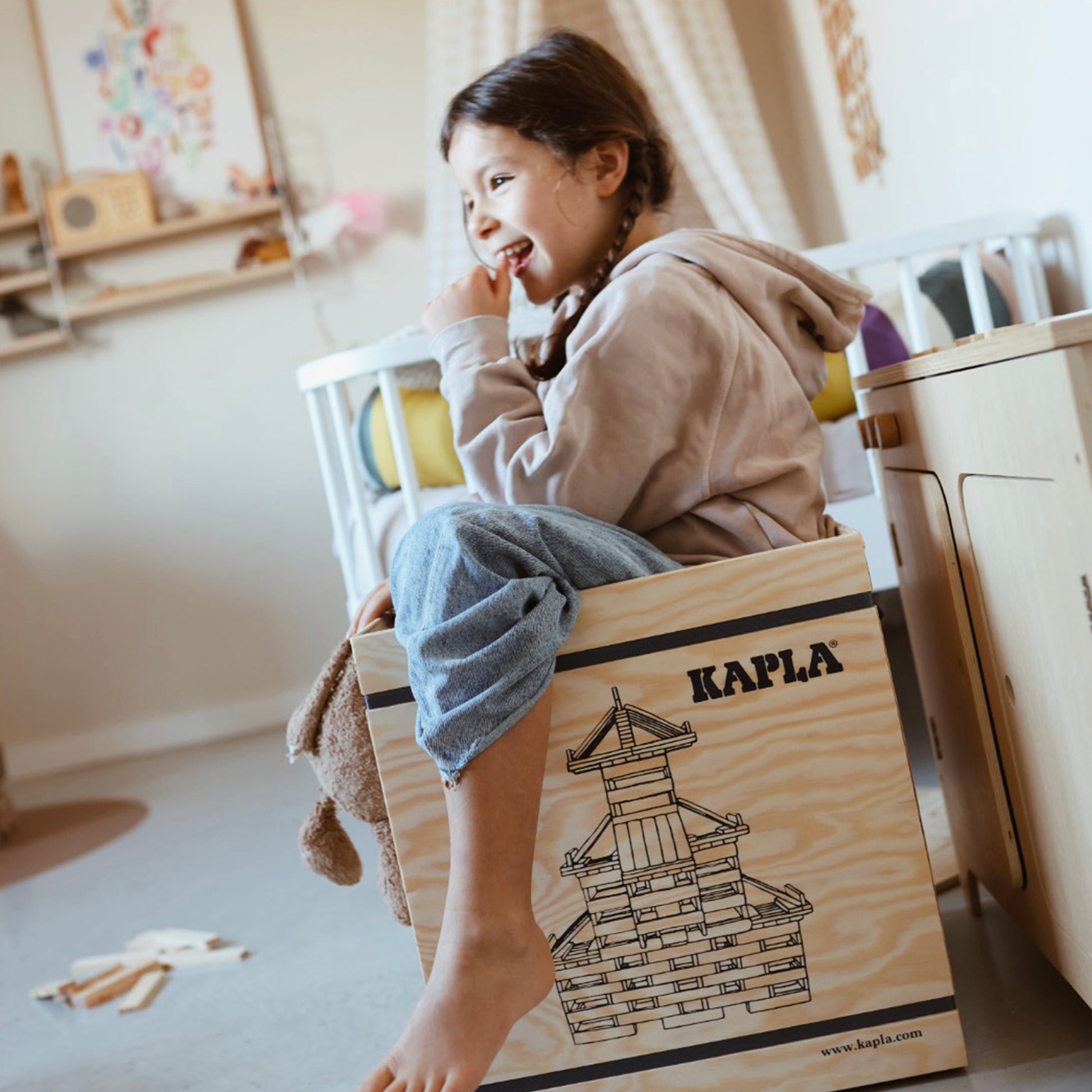 Die KAPLA-Plättchen sind aus naturbelassenem, nachhaltigem Pinienholz (Seekiefer) gefertigt, das aus französischen, zu 100% nachhaltig bewirtschafteten Wäldern stammt. Die farbigen Holzplättchen sind mit lebensmittelechter Farbe gefärbt.