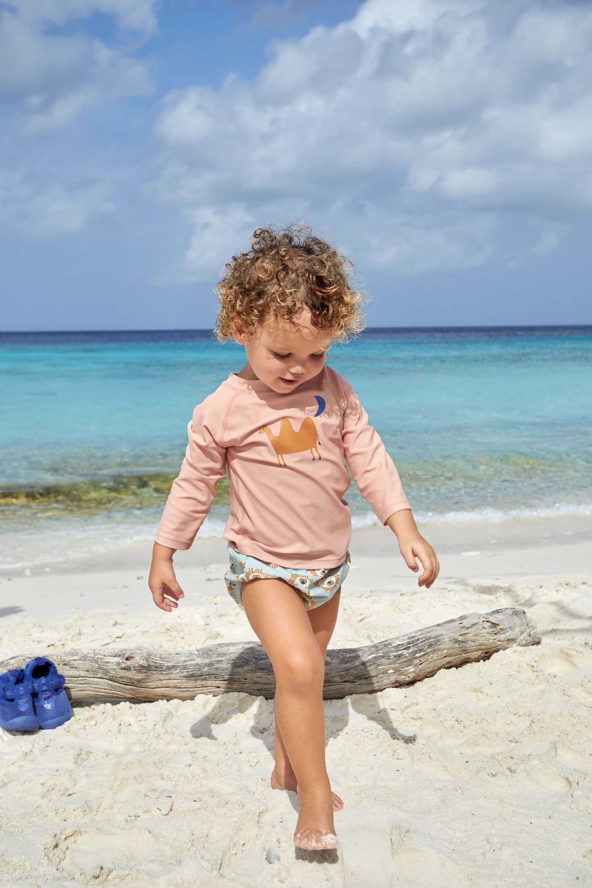 Rosa, langärmliges Kinder-UV-Shirt mit niedlichem Kamel-Print und UV-Schutz 60.