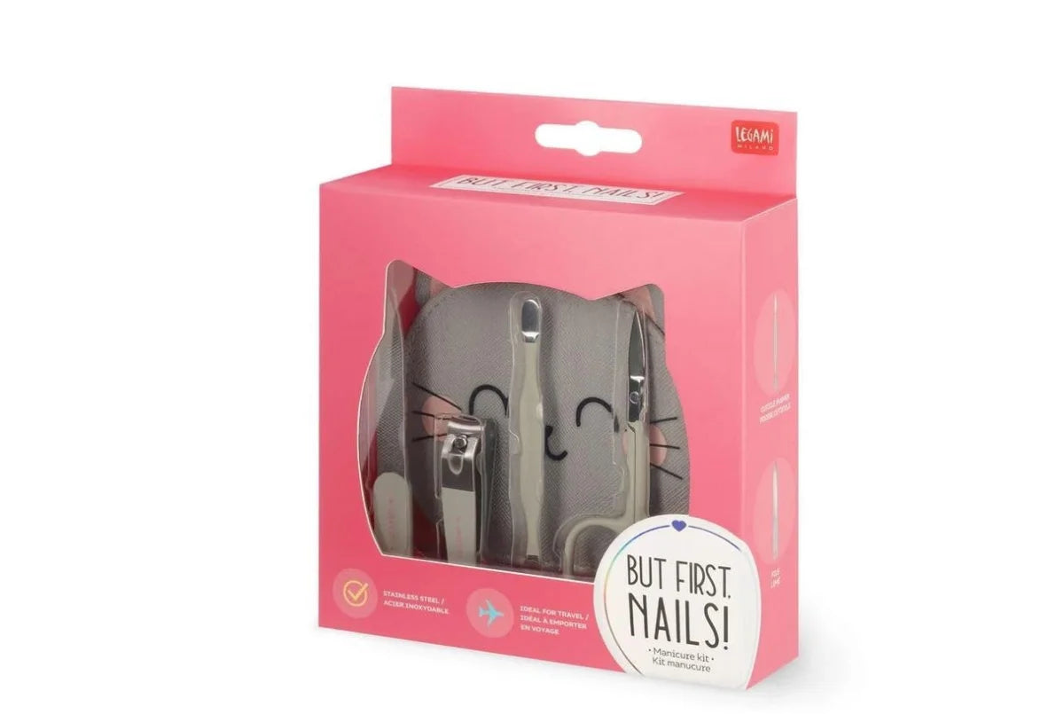Alles, was du für gepflegte Nägel brauchst, steckt in diesem süßen Set von Legami. Im praktischen Etui mit Katzenmotiv warten eine Schere, ein Nagelknipser, eine Feile und ein Hautschieber auf ihren Einsatz. Kompakt, leicht und jederzeit griffbereit – perfekt für unterwegs, im Büro oder als kleines Geschenk.