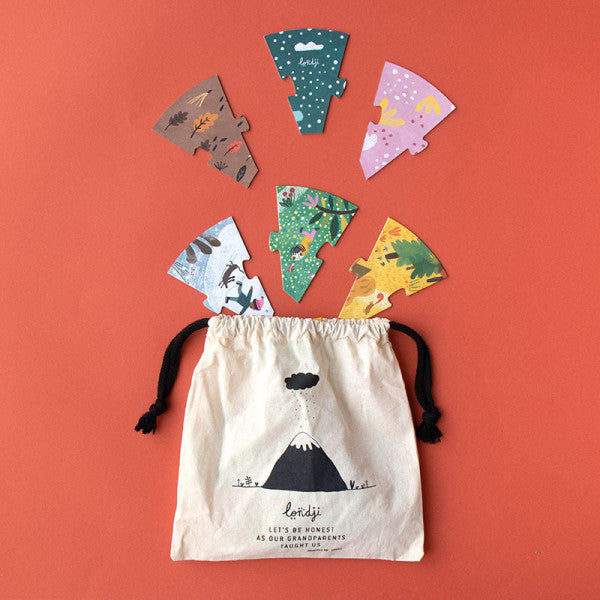 Jede Jahreszeit besteht aus 10 Teilen, die übereinander gepuzzelt werden. So entstehen Schritt für Schritt die Bilder der Natur im Wandel.