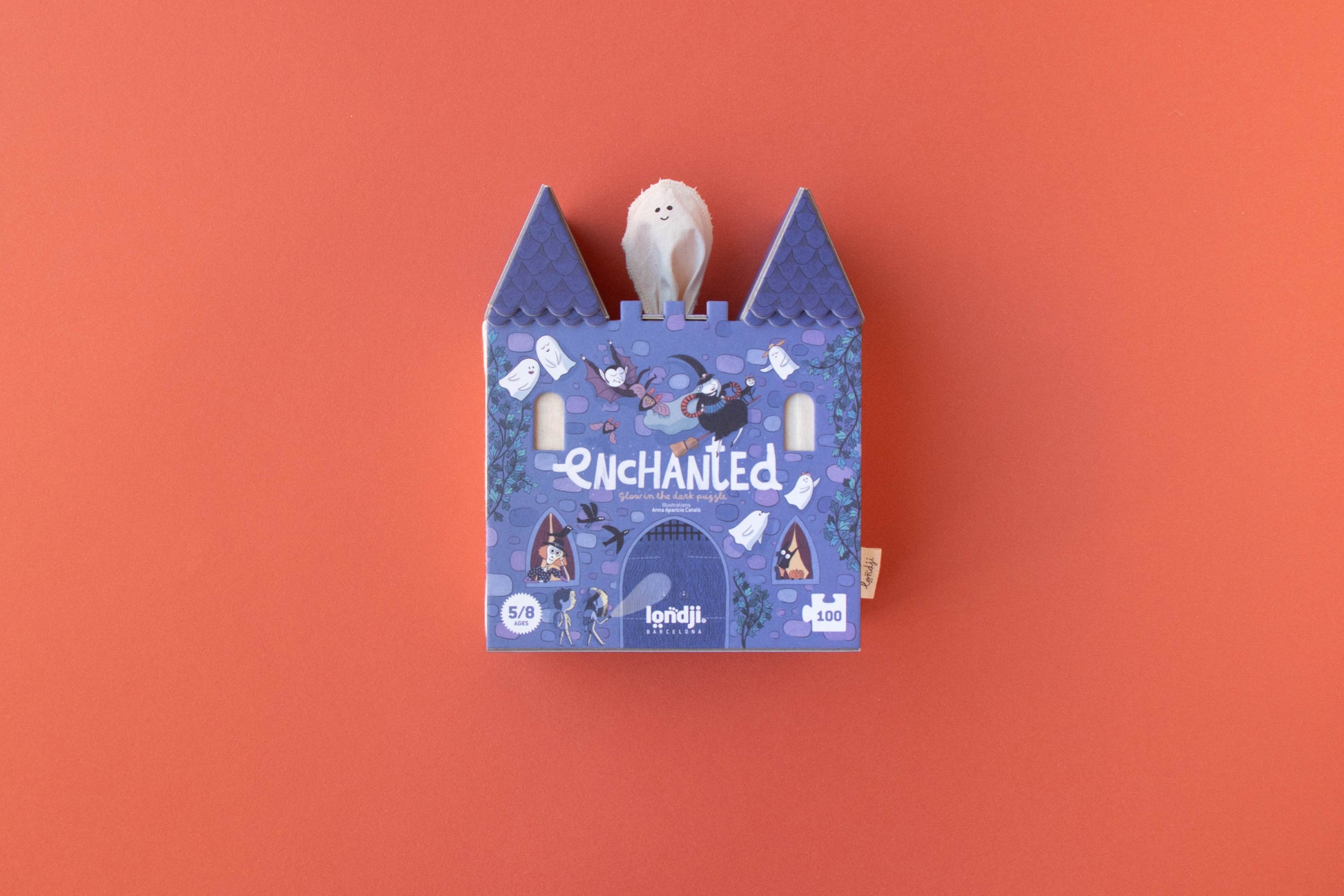 Tauche ein in das „Enchanted"-Puzzle von Londji, einem 100-teiligen Wendepuzzle, das mit einem aufregenden Leuchteffekt im Dunkeln begeistert. Wenn du das Licht ausschaltest, beginnt das Puzzle zu strahlen und die Geister und Monster, die auf den ersten Blick vielleicht noch geheimnisvoll erscheinen, leuchten freundlich und einladend. Dieser fluoreszierende Effekt macht das Puzzle zu einem faszinierenden Erlebnis, das sowohl tagsüber als auch nachts begeistert.