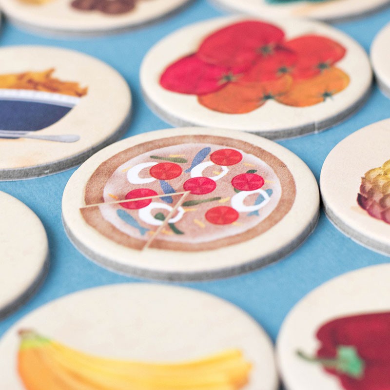 Dieses Spiel lädt zu vielen Varianten ein: Spiele mit echten Rezepten, übe Wörter in verschiedenen Sprachen oder erfinde ganz neue Gerichte. Ein fröhliches Beobachtungs- und Reaktionsspiel für die ganze Familie.