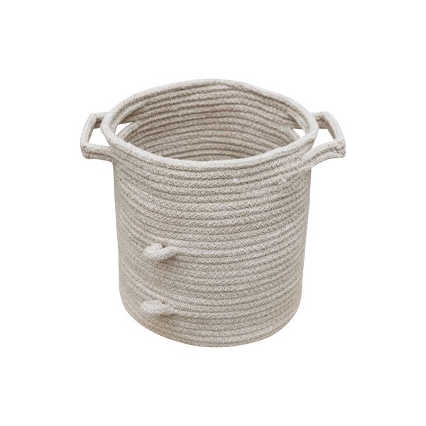 Gefertigt ist der Korb aus 67 % Baumwolle und 33 % recycelten PET-Flaschenfasern – also nicht nur hübsch und funktional, sondern auch nachhaltig. Mit einem Durchmesser von etwa 21 cm und einer Höhe von 21 cm passt er wunderbar in Regale, auf den Boden oder direkt in die Spielküche.
