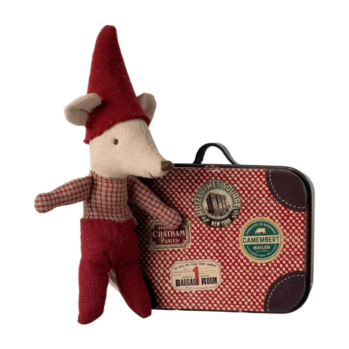 Ein kleines Stück Weihnachtszauber für unterwegs: In diesem liebevoll gestalteten Reisekoffer schläft eine winzige Weihnachtsmaus eingekuschelt in ihre warme Decke.