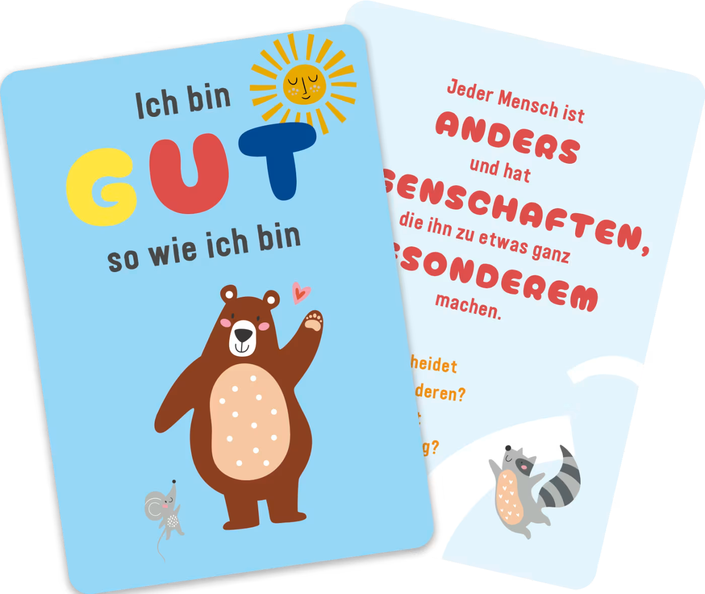 Spielerisch das Selbstwertgefühl stärken: Kartenbox mit 50 Mutmach-Kärtchen für Grundschulkinder