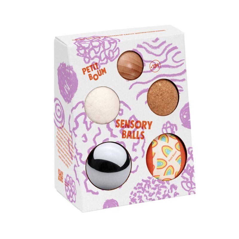 Diese sorgfältig zusammengestellte Auswahl aus fünf verschiedenen Bällen bietet eine einzigartige Vielfalt an sensorischen Erfahrungen. Jeder Ball besteht aus einem anderen natürlichen Material – mit eigener Textur, Temperatur, Haptik, Gewicht und Größe.
