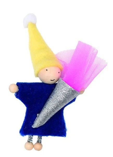 Wichtel ca. 8 cm, Karte 15 x 9 cm. Mit individuellem Spruch auf Hangtag zum Ausschneiden.