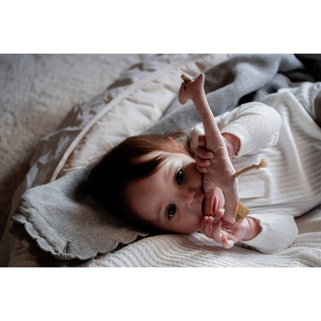 Das Spielzeug ist aus GOTS-zertifizierter, schadstofffreier Baumwolle gefertigt und daher besonders sanft und sicher – auch, wenn es einmal in den Mund genommen wird. Die Giraffe kann im Schonwaschgang in der Waschmaschine gereinigt werden.
