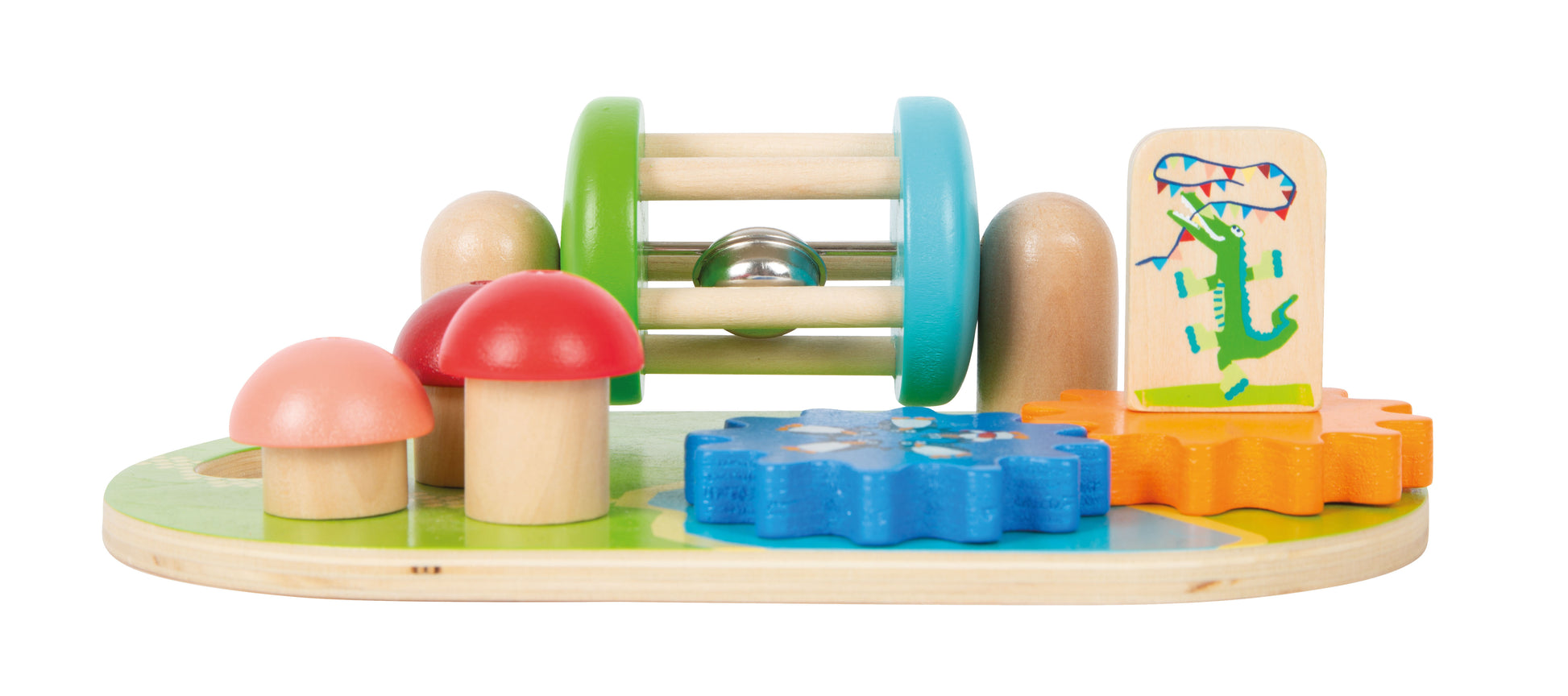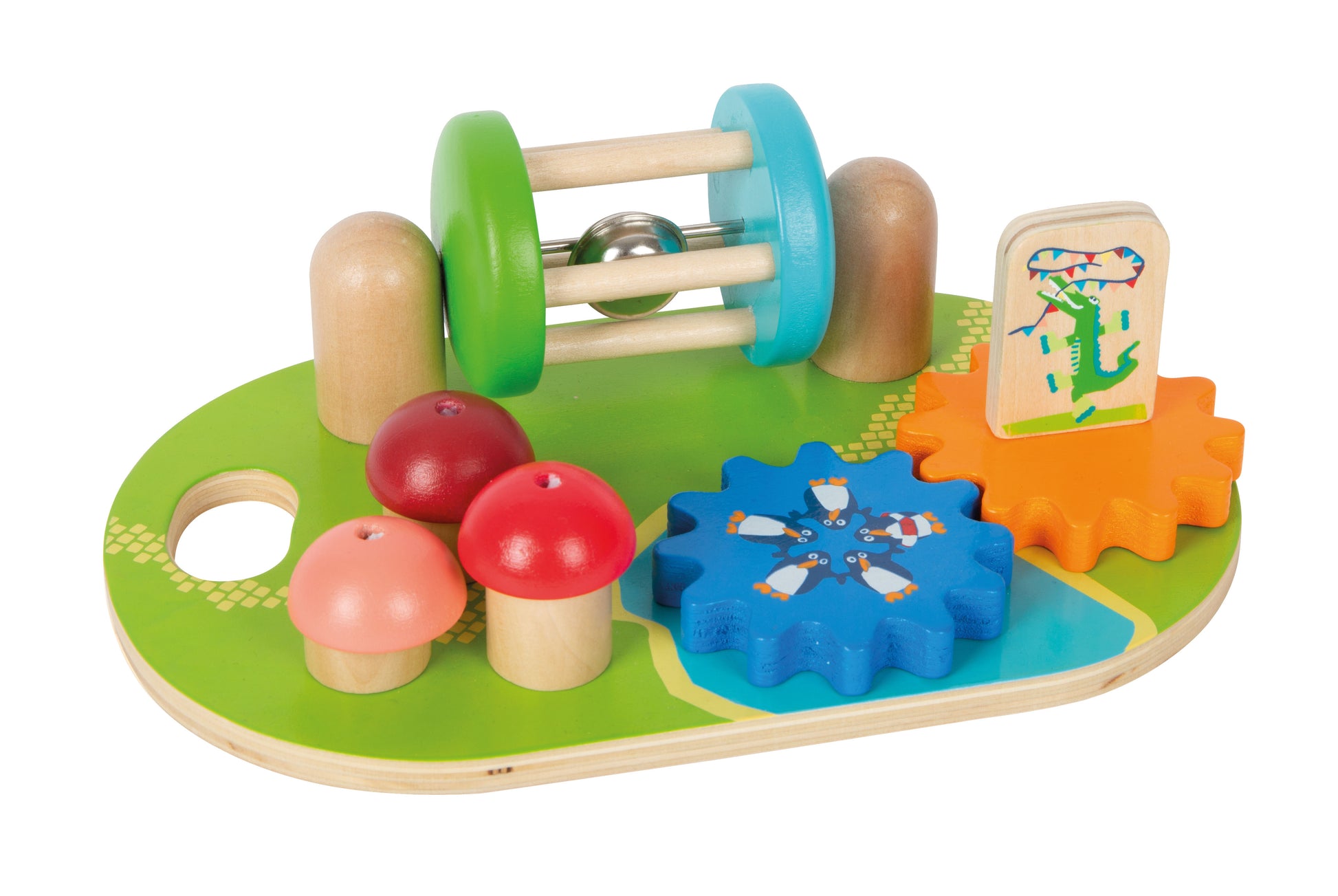 Das kleine Glöckchen macht Geräusche und weckt deine Aufmerksamkeit – so werden auch deine Ohren gefördert. Du kannst das Board bequem auf den Boden legen oder am Griff festhalten und damit spielen, wo du möchtest.