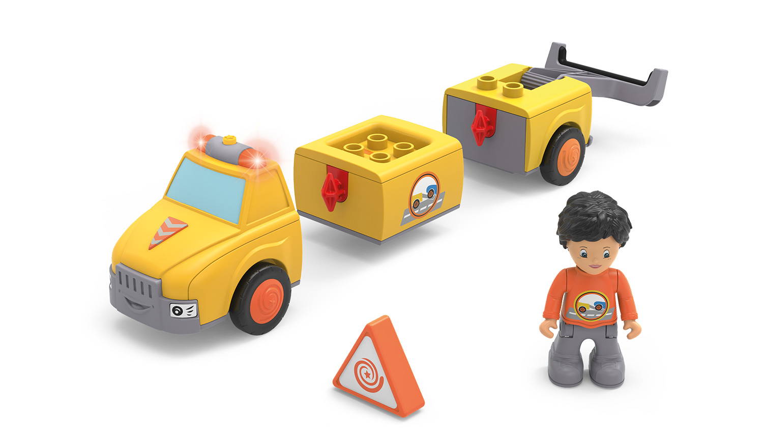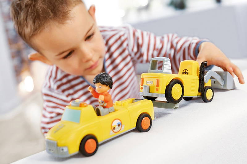 Carry lässt sich in drei Teile zerlegen und mit anderen Toddys-Fahrzeugen kombinieren – so entstehen immer neue, fantasievolle Fahrzeuge. Unterschiedliche Oberflächen regen den Tastsinn an, und dank des siku-Click&Play-Systems können die Fahrzeugteile kinderleicht zusammengesteckt und wieder getrennt werden.