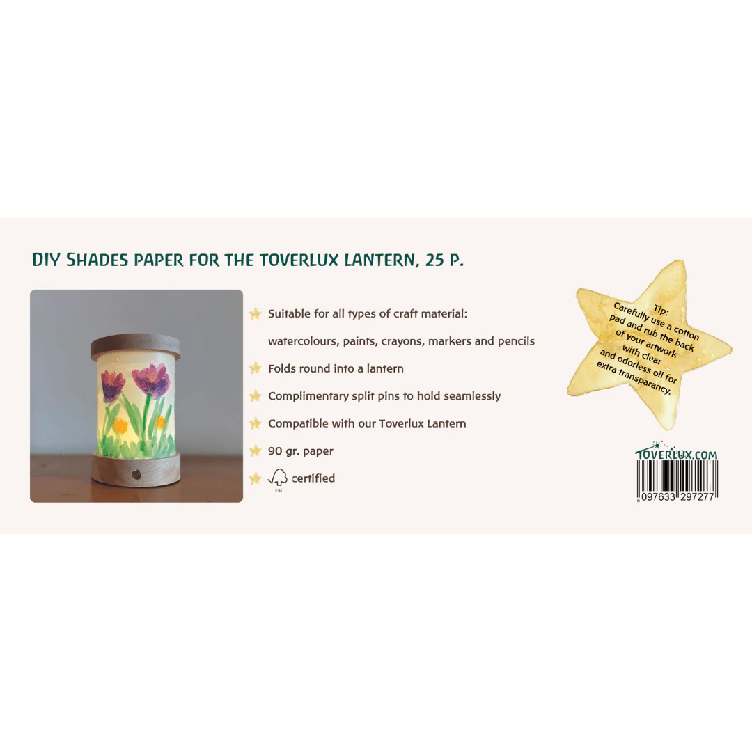 Färbe deine Träume und zeichne dir deine eigene Welt – mit den DIY-Toverlux-Lampenschirmen wird deine Kreativität zum strahlenden Mittelpunkt. Du kannst die Schirme mit deinen Lieblingsmaterialien gestalten und sie dann zu einer Laterne falten, die von innen leuchtet und deine Kunst aus jedem Blickwinkel sichtbar macht.