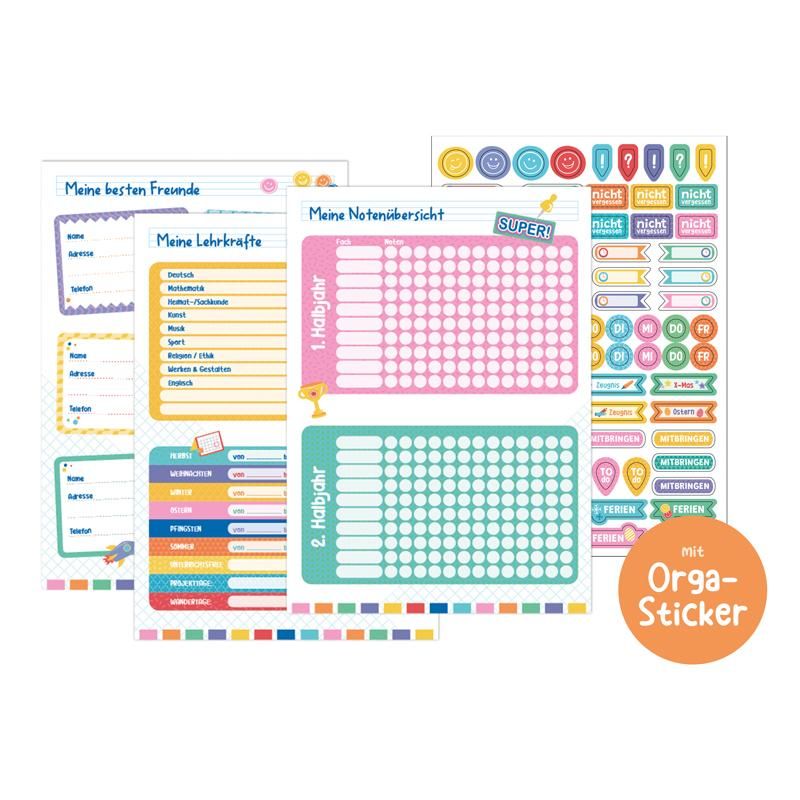Das Heft bietet farbige Wochentage zum Eintragen und Abhaken der Hausaufgaben für ein Halbjahr. Zusätzlich enthält es kreativ gestaltete Sonderseiten für Stundenpläne, Notenübersichten, Lehrer- und Ferienlisten. Auch für die wichtigsten Adressen und Telefonnummern von Freunden ist Platz. Eine integrierte 1x1-Lerntafel erleichtert außerdem das Üben der Mathematik.