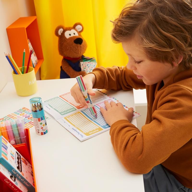 Für noch mehr Motivation sorgen 80 praktische Sticker, mit denen Kinder ihre Seiten bunt gestalten und ihre Aufgaben übersichtlich markieren können.