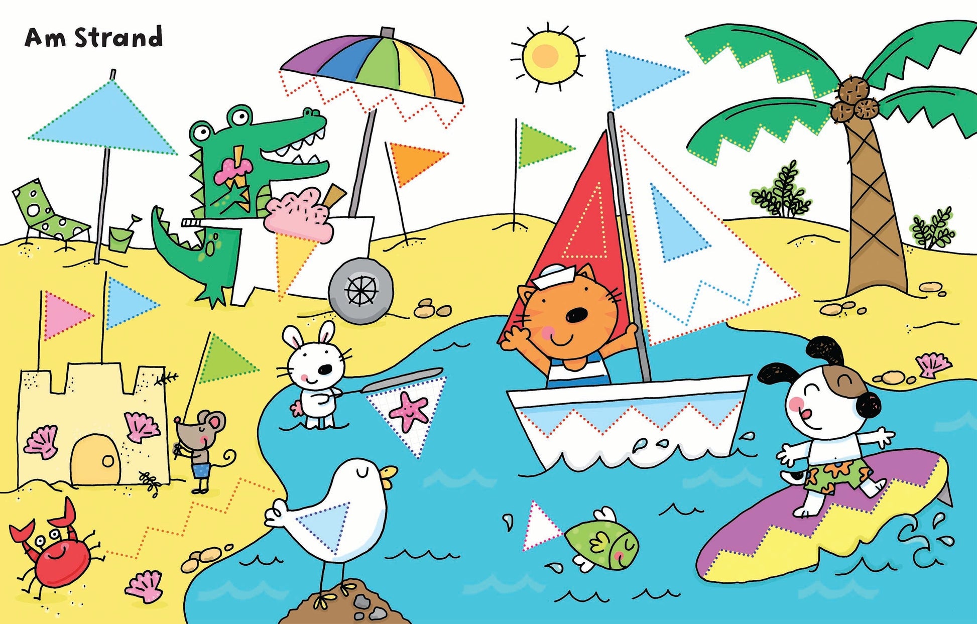 Die lustigen Schwungübungen in diesem Buch trainieren die Feinmotorik und bereiten Kinder im Vorschulalter auf das Schreiben vor. Und falls doch mal was danebengeht: einfach wegwischen und von vorne beginnen.