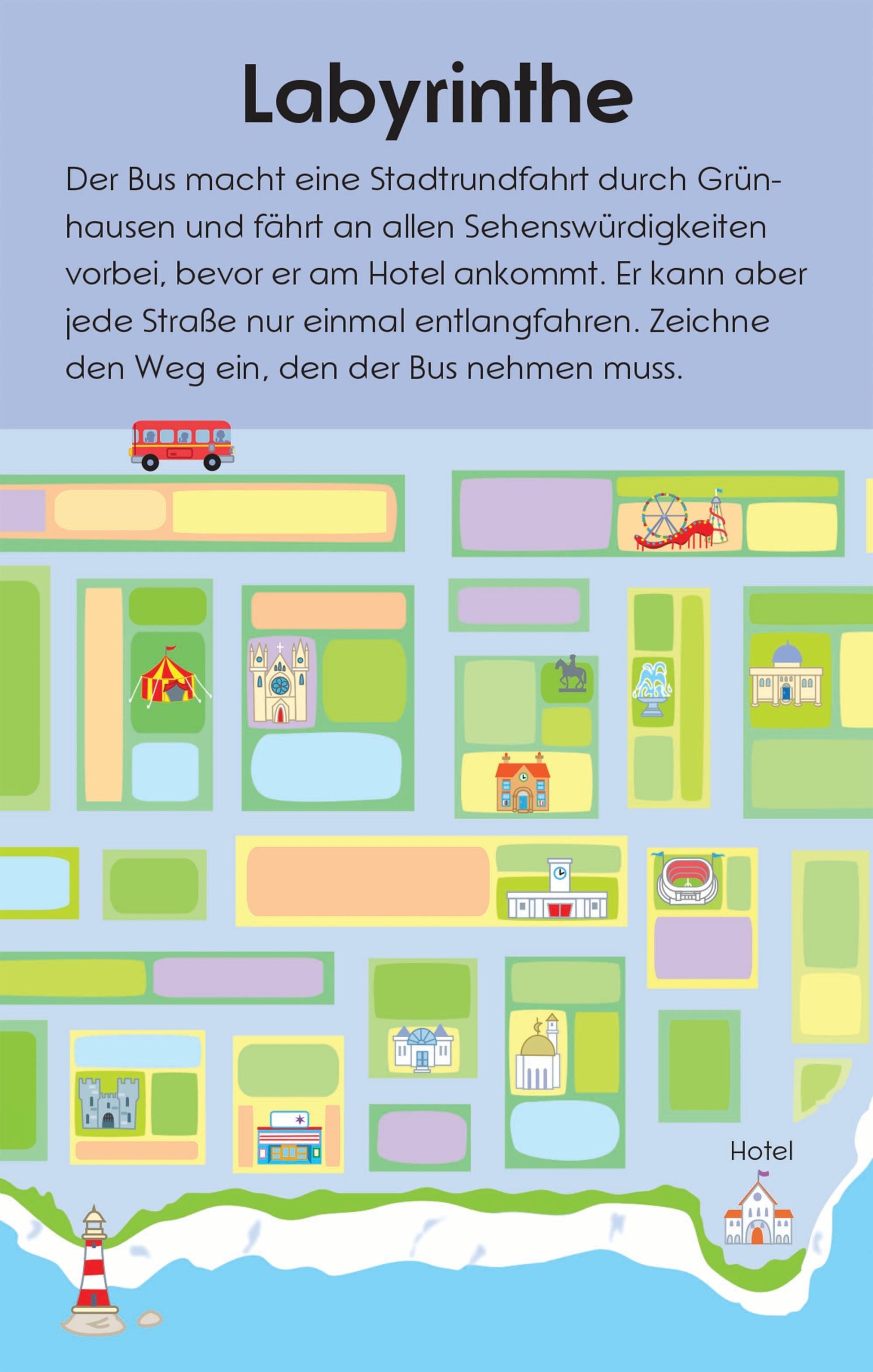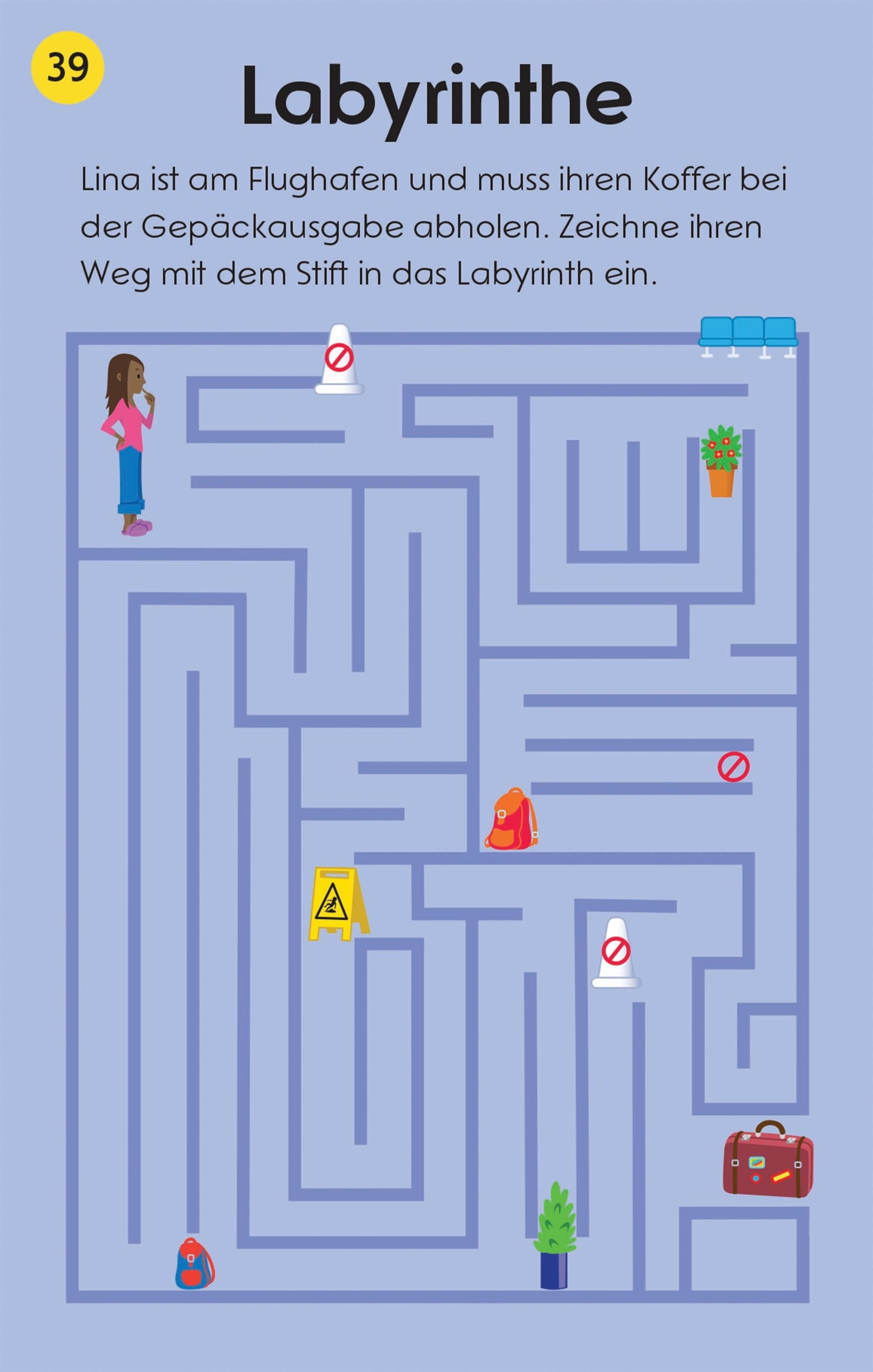 Wie zeichnet man mit wenigen Strichen ein Flugzeug, welche Silhouette passt zu welcher Statue, was gehört nicht an den Nordpol, wie kommt Jakob am schnellsten zur Schule und welches Bild verbirgt sich hinter den Punkten? Mit den verblüffenden Buchstaben-, Zahlen-, Such- und Gedächtnisspielen, Kreuzworträtseln und Labyrinthen in diesem Kartenset vergeht für Kinder jede Reise wie im Flug. Dank des abwischbaren Stifts kann immer wieder neu begonnen werden.