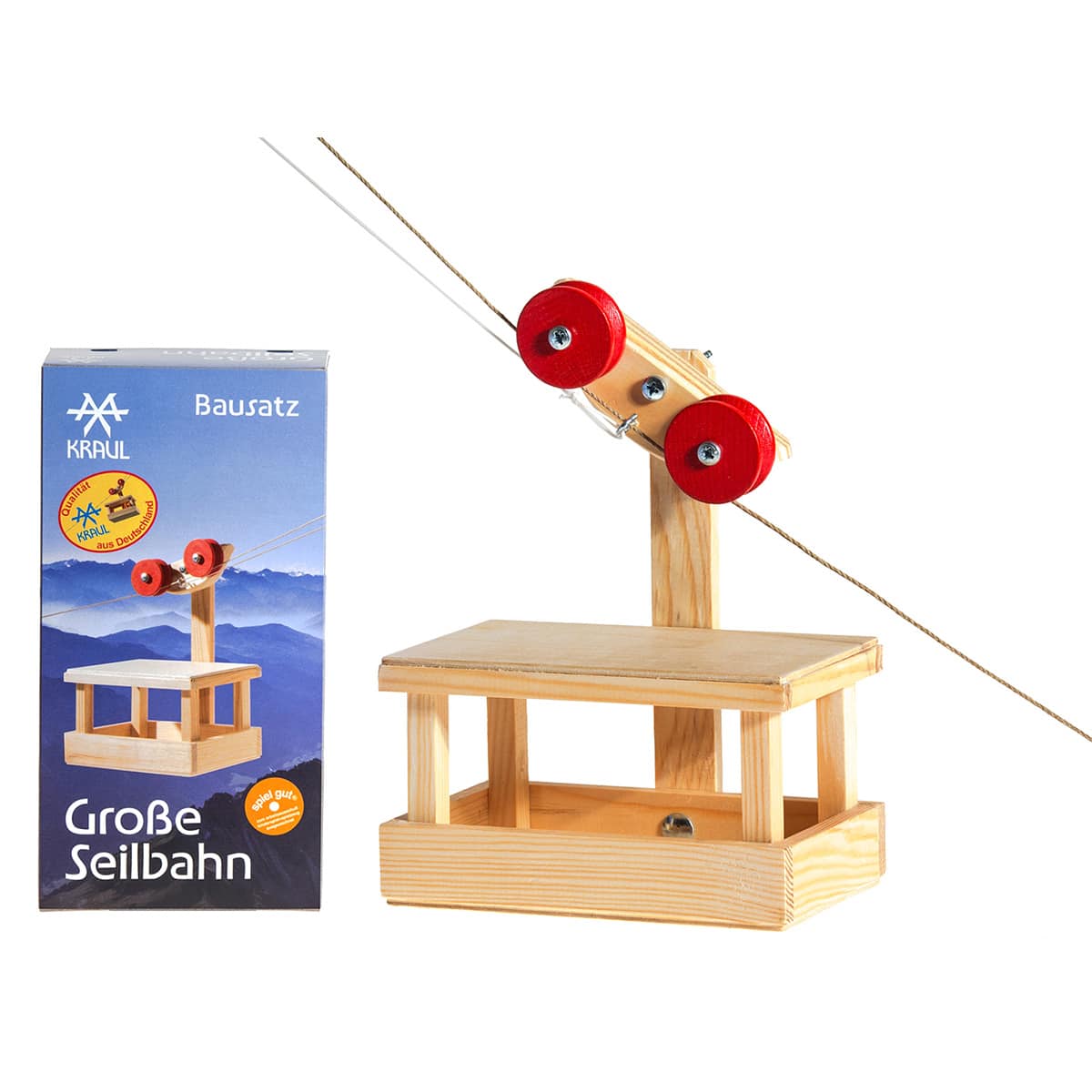 Mit der Walter Kraul Großen Seilbahn können Kinder ihre Fantasie frei spielen lassen! Die Seilbahn saust durch das Zimmer oder den Garten und bringt Puppen und Bauklötze mit. Der Bausatz ist ab 8 Jahren geeignet und begeistert mit einer Zugseilsteuerung. So können auch schon 6-jährige mithelfen!
