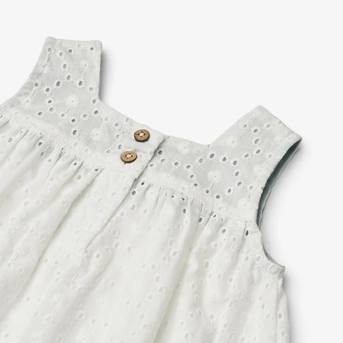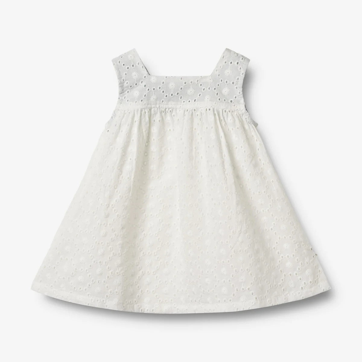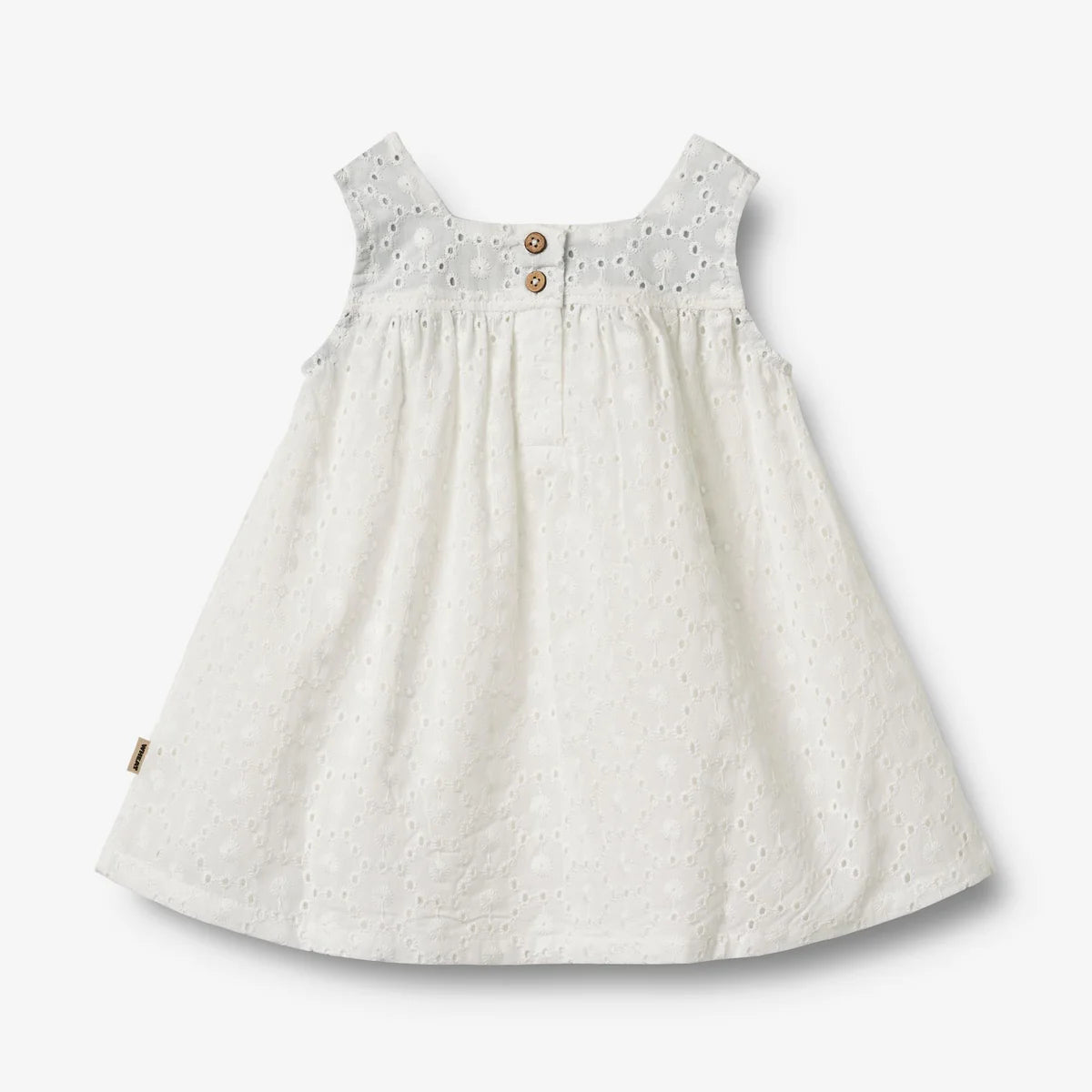 Ärmelloses Kleid in schöner Broderie Anglaise für Babys.