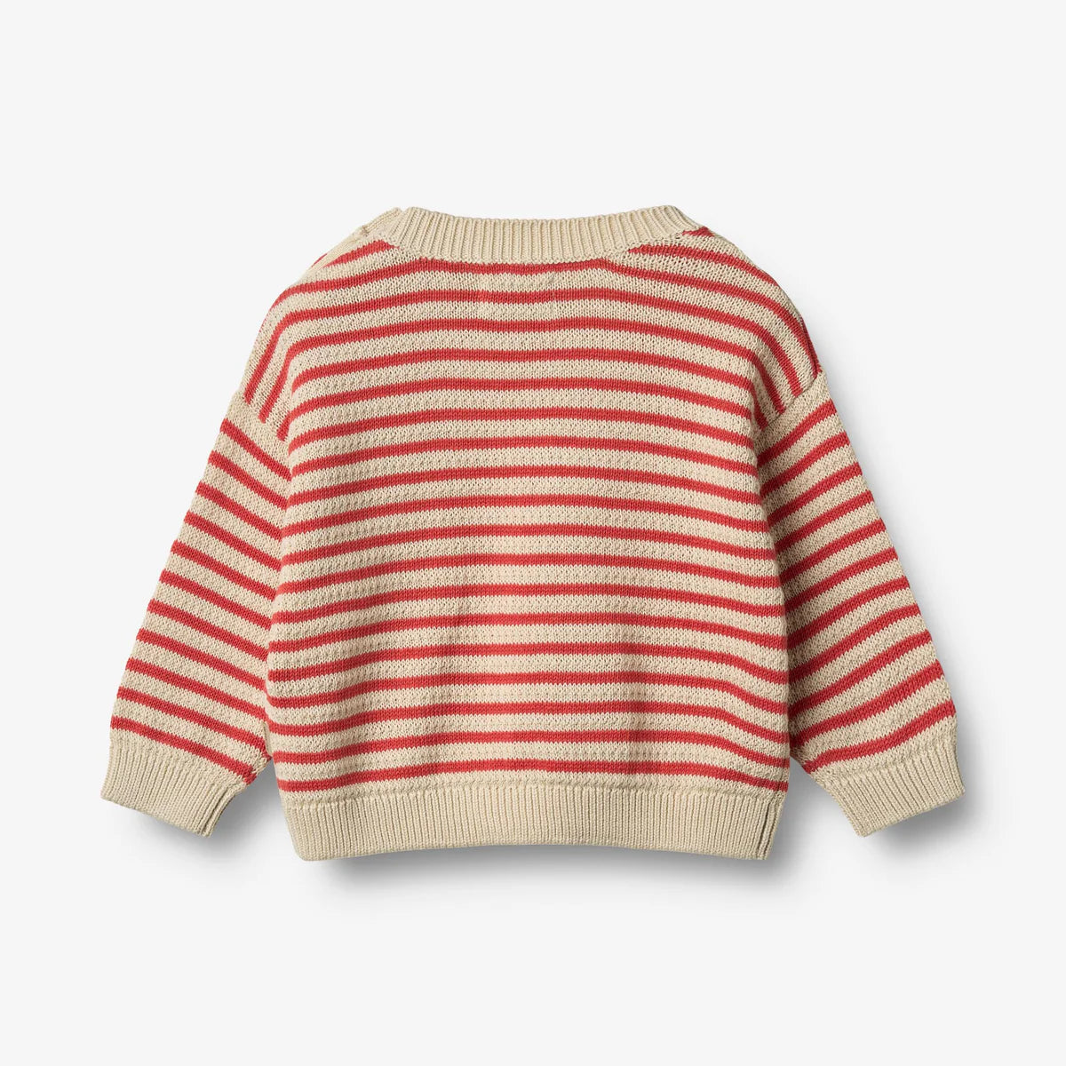 Langärmeliger gestrickter Pullover mit Streifen aus weicher Bio-Baumwolle für Babys.