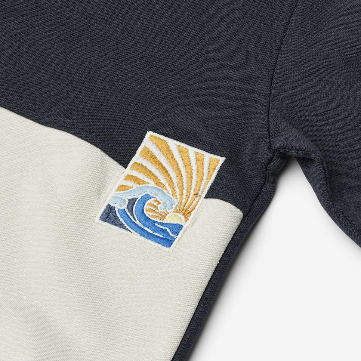 - Farbblock-Panel und kleines Stickereipatch auf der Brust
